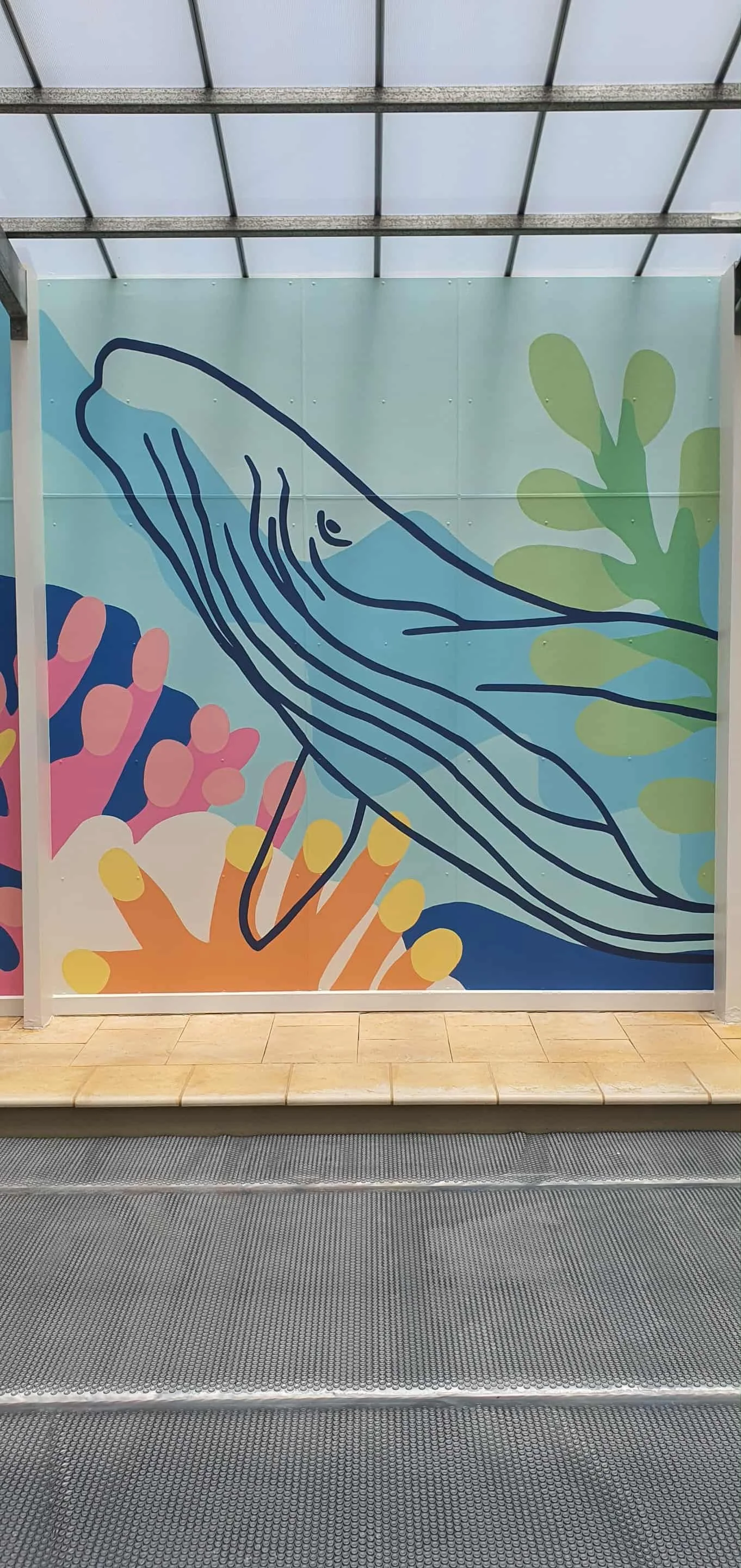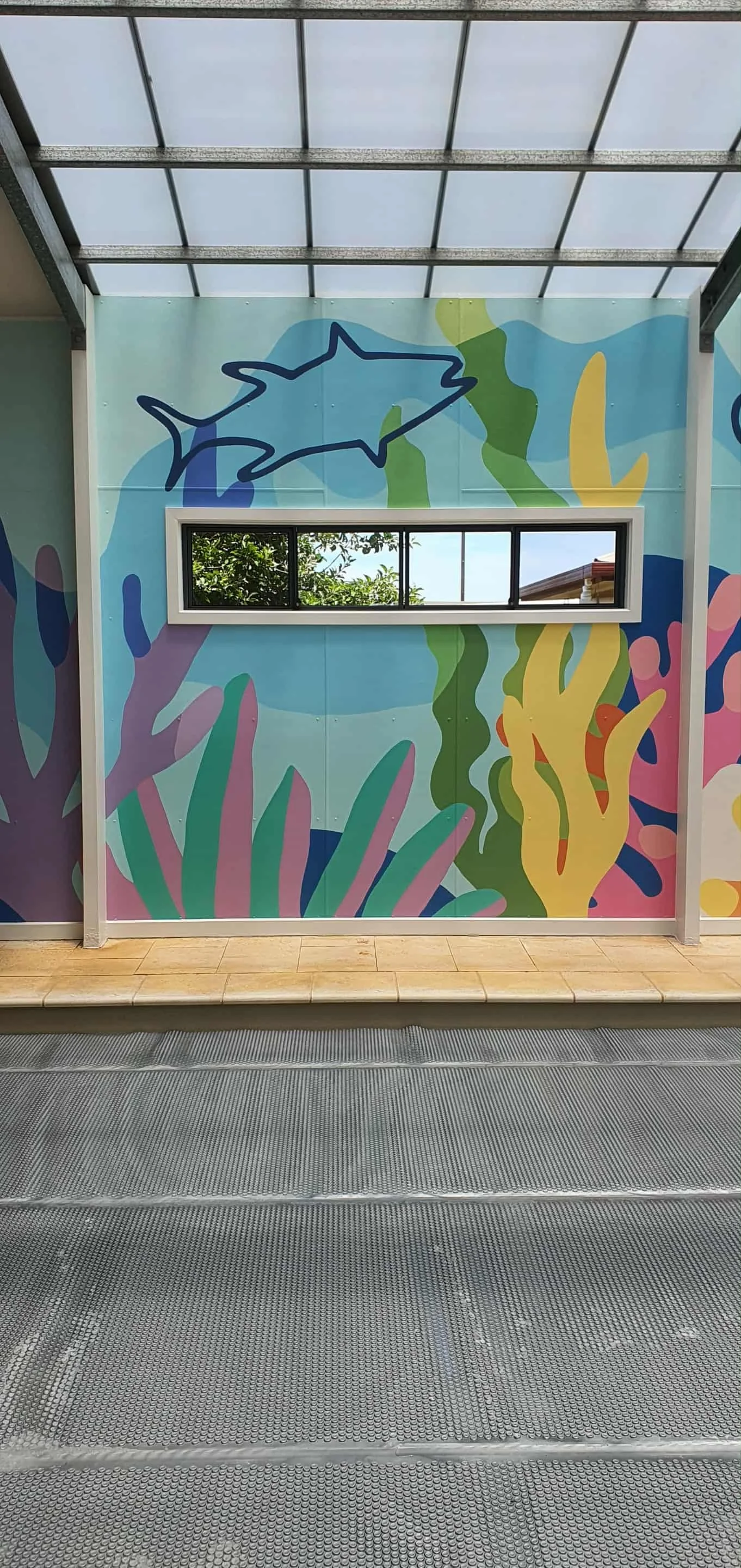 As a space where people build confidence in the water, this mural gently reinforces that enjoying the ocean also means protecting it. It’s designed to feel warm, inviting, and full of wonder — encouraging the community to feel at home in the water while appreciating the precious world beneath the surface.